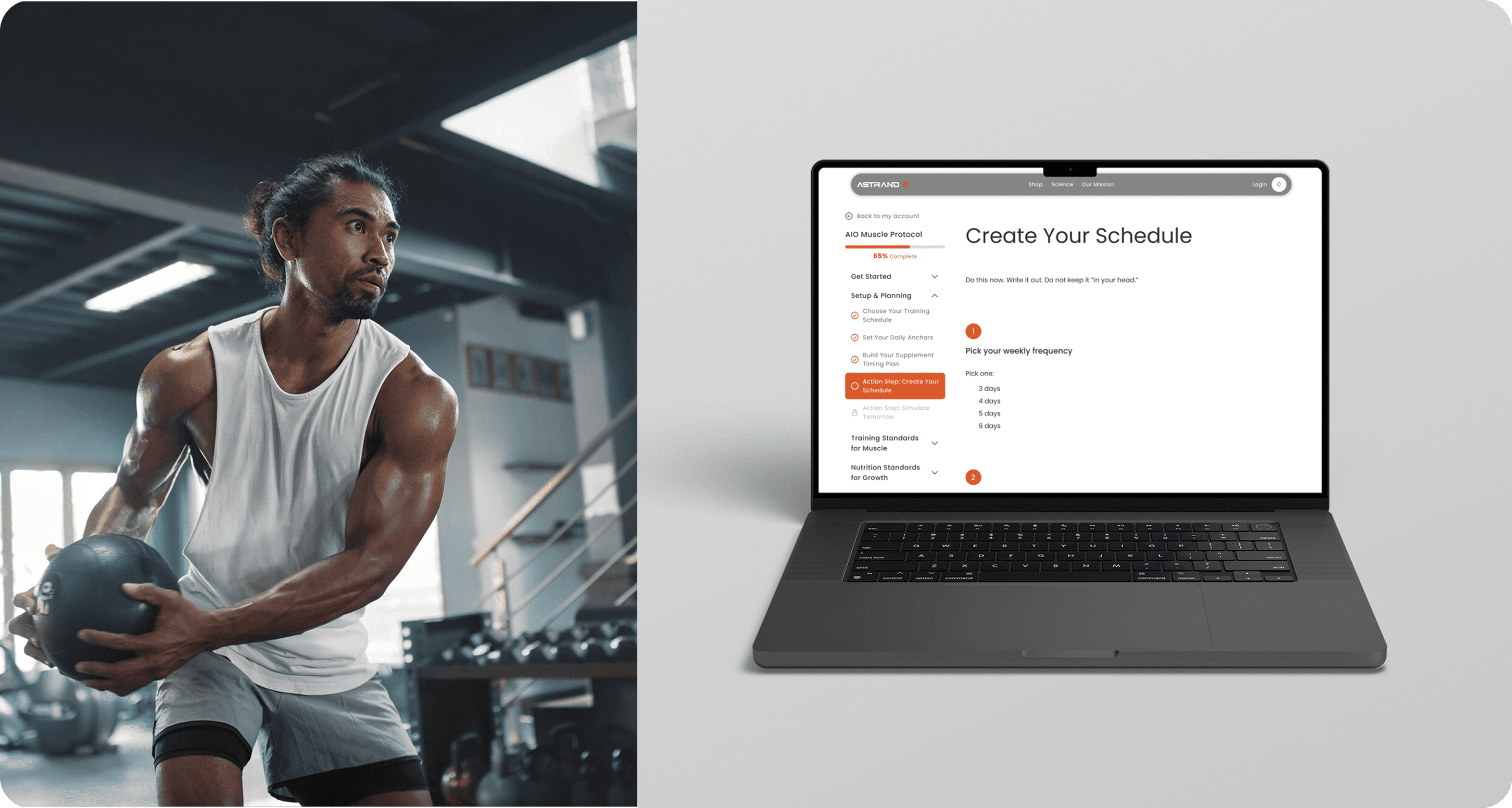 One integrated plan: supplement timing, training, nutrition, hydration, and sleep. All built to work together.